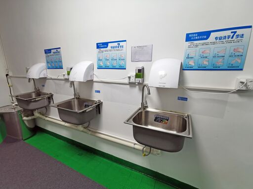Beyond handwashing, we also use air showers.